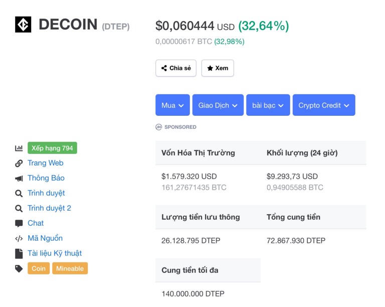 Decoin is airdropping a total of 500,000 DTEP & 20,000 USDT to their community members for easy tasks. Sign up at their website, complete easy social tasks and submit your details to the bot to receive up to 80 DTEP & 2 USDT. DTEP is already listed on CoinMarketCap