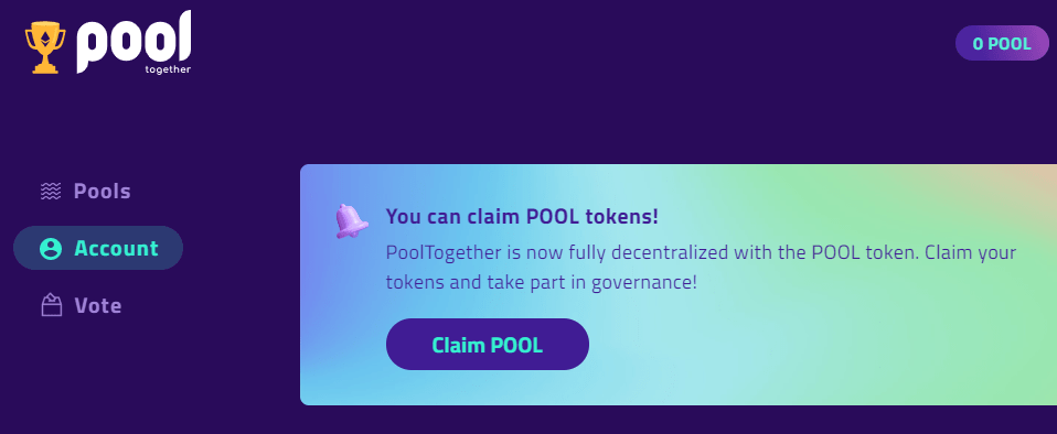 The POOL token exists solely to govern the PoolTogether Protocol. Any changes to the Protocol will be proposed and voted on by POOL token holders. These proposals can include things like adjusting the number of winners, launching new prize pools, integrating new yield sources, implementing scaling solutions and controlling future distribution of POOL to protocol contributors.